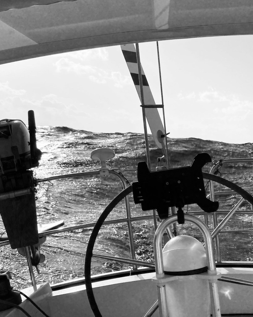 Het zijn geen comfortabele dagen en de golven zijn indrukwekkend maar de Vagebond, Kapitein en onze jongste matroos doen het fantastisch! Alleen de mama aan boord is soms wat angstig en vraagt zich wel een af wat we aan het doen zijn.